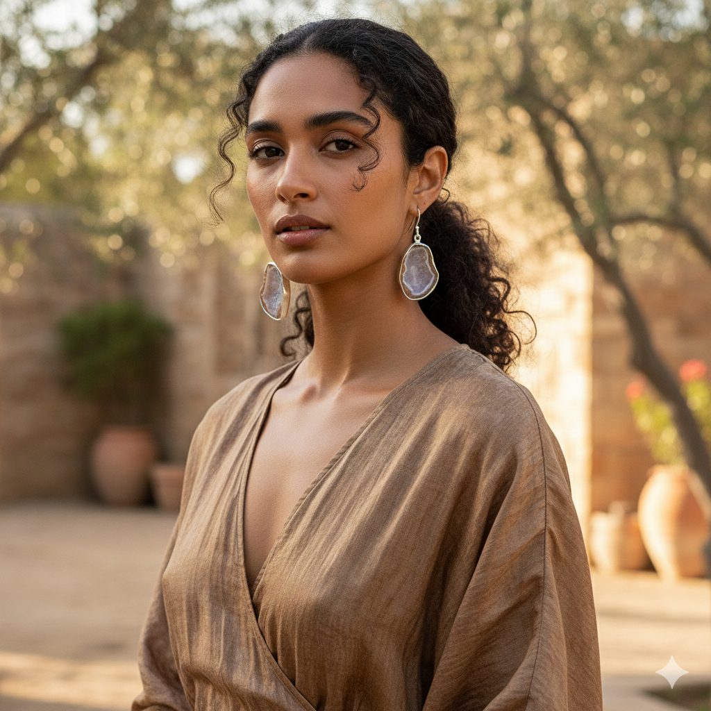 Perfect for lovers of raw and natural gemstone jewelry, these earrings celebrate the untouched beauty of Coconut Geode. The fancy rough cut enhances the stone’s natural character, making each pair truly unique. Lightweight and stylish, they make a thoughtful gift for her or a distinctive addition to any handcrafted gemstone jewelry collection.