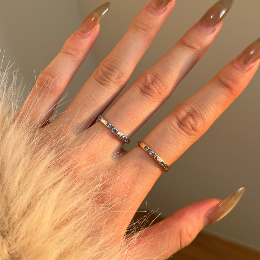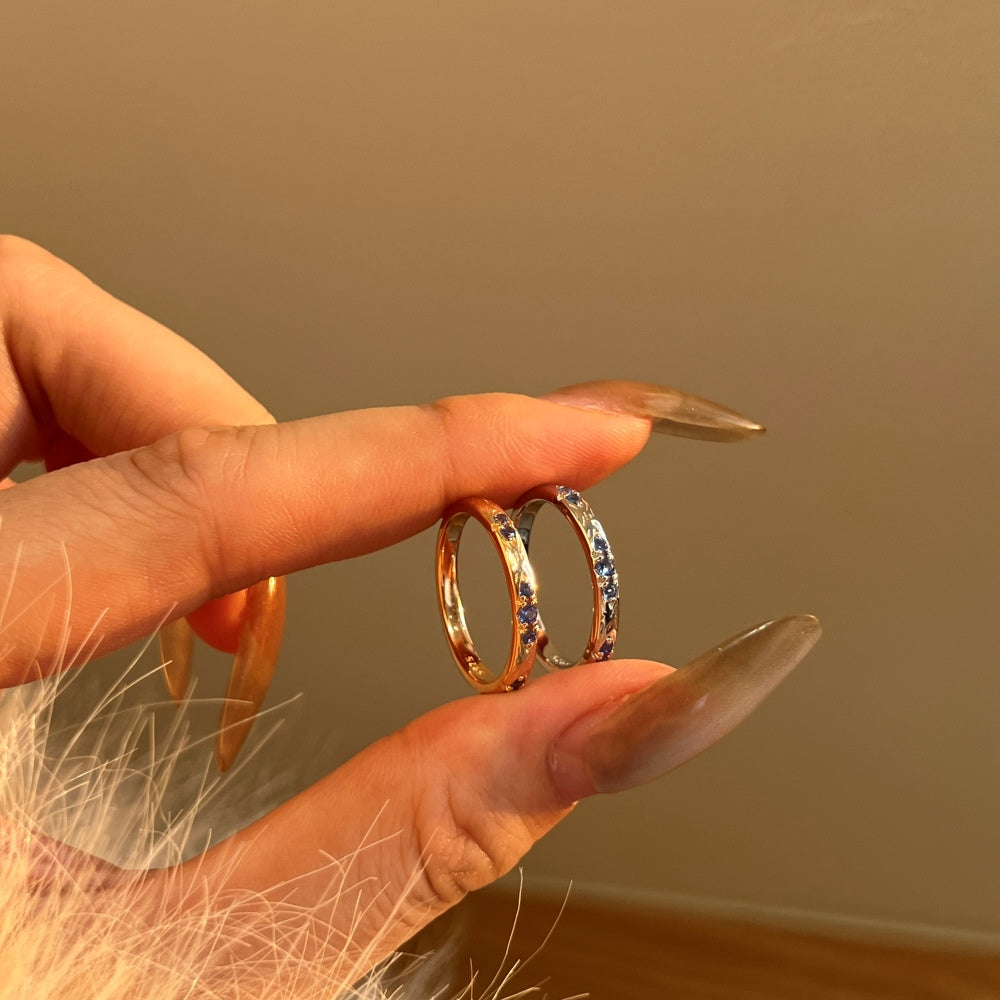 Rose gold and gold plating options are available, with stone color customization also offered; please specify your ring size in the description.